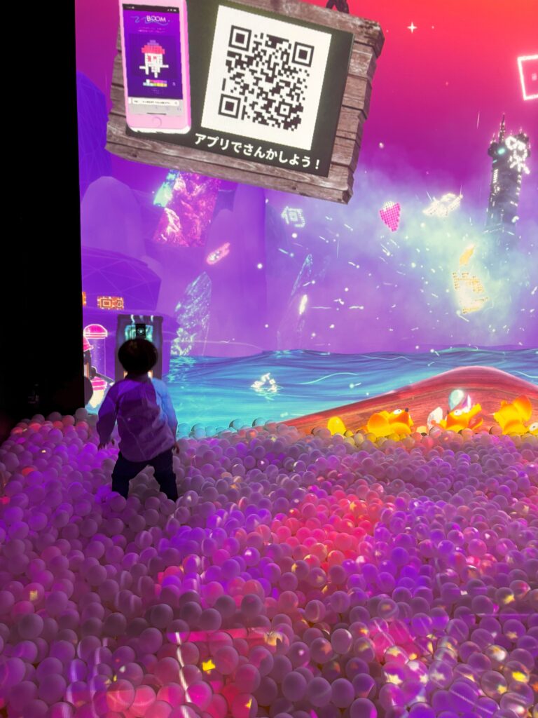 床一面のボールがプロジェクションマッピングによって、まるで異世界の海のように変化します。
